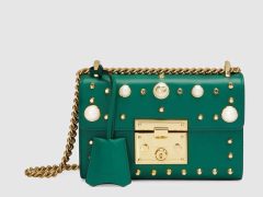 Gucci官网 Padlock 祖母绿真皮 432182 DLXDG 3175 GG 珍珠铆钉肩背包