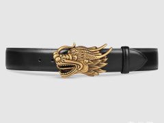 Gucci腰带 黄铜金属龙形带扣黑色真皮皮带458952 DT90T 1000