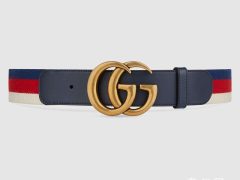 Gucci皮带双G带扣Sylvie蓝红色织带腰带409416 HE2MT 9199