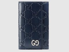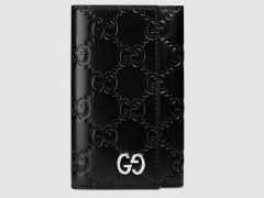 黑色Gucci Signature真皮金属GG钥匙包钥匙扣473924 CWC1N 1000
