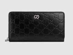 Gucci金属GG Signature黑色全拉链式皮夹473928 CWC1N 1000