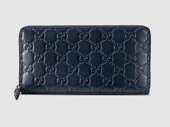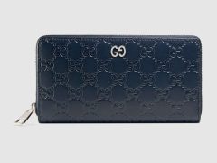 Gucci金属GG Signature蓝色全拉链式皮夹473928 CWC1N 4009