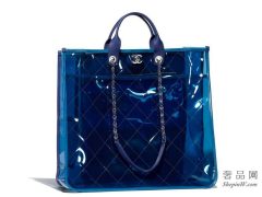 2018春夏系列Chanel香奈儿 蓝与深蓝PVC材质、小羊皮 大号手提包