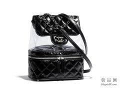 Chanel香奈儿 2018春夏系列黑色 皱纹小牛皮、PVC 双肩背包
