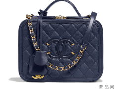 香奈儿Chanel 海军蓝 颗粒压花牛皮革化妆包