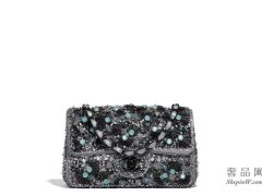 Chanel handbag口盖包 碳灰及蓝色刺绣面料、小羊皮