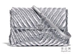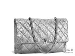 Chanel handbag口盖包 金属质感皱纹银色小牛皮