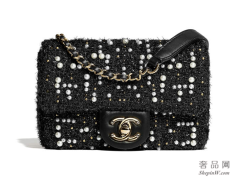 香奈儿chanel 斜纹软呢、人造珍珠 口盖包